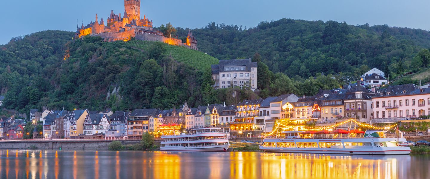 Am Nachmittag erreichen Sie die malerische Stadt Cochem, die mit ihren charmanten Gassen und der beeindruckenden Reichsburg begeistert. Bei einem geführten Stadtrundgang lernen Sie die schönsten Ecken dieser Stadt kennen und erfahren mehr über ihre Geschichte und Traditionen. Nach der Erkundungstour haben Sie die Gelegenheit, sich am Weihnachtsmarkt mit einem wärmenden Glühwein aufzuladen und die festliche Stimmung zu genießen. Anschließend kehren Sie an Bord zurück, wo ein schmackhaftes Abendessen auf Sie wartet. Während Sie die Köstlichkeiten genießen, setzt das Schiff seine Reise über Nacht nach Koblenz fort.