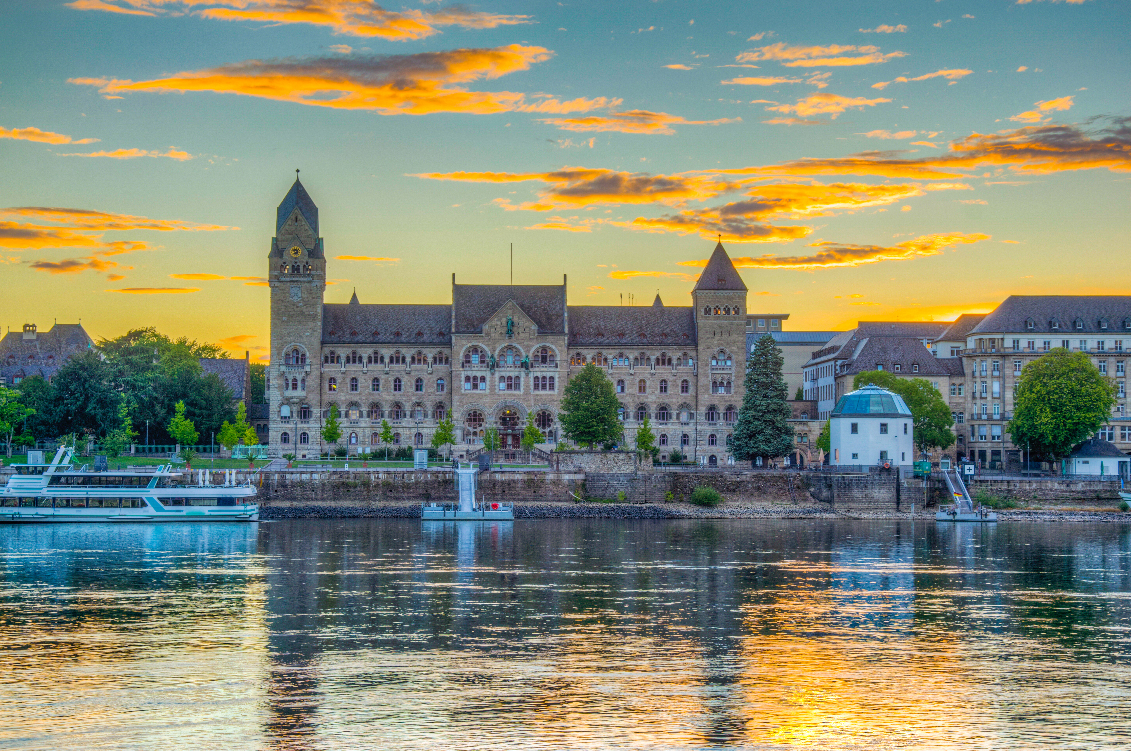 Koblenz ist eine Stadt in Deutschland, die sich im Bundesland Rheinland-Pfalz befindet. Sie liegt am Zusammenfluss von Rhein und Mosel und ist eine der ältesten Städte Deutschlands mit einer Geschichte, die bis in die römische Zeit zurückreicht. Koblenz ist berühmt für ihre beeindruckende Lage, die malerischen Uferpromenaden und die historische Altstadt. Die Stadt ist auch bekannt für das Deutsche Eck, wo der Rhein und die Mosel aufeinandertreffen, sowie für die Festung Ehrenbreitstein, die hoch über der Stadt thront. Historisch war Koblenz ein wichtiger Handels- und Verkehrsknotenpunkt und spielte eine bedeutende Rolle in der Geschichte der Region.