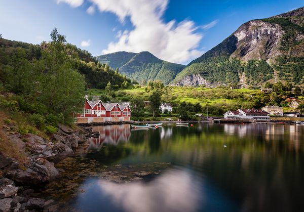 Flam ist eine malerische Stadt in Norwegen, die sich in der Region Vestland befindet. Sie liegt am Ende des Aurlandsfjords, einem Seitenarm des berühmten Sognefjords, und ist bekannt für ihre atemberaubende Natur und die spektakulären Landschaften, die sie umgeben. Flam ist berühmt für die Flåmsbana, eine der steilsten Eisenbahnstrecken der Welt, die Touristen durch beeindruckende Berglandschaften und vorbei an Wasserfällen führt. Die Stadt hat eine lange Geschichte als Handels- und Fischereistandort, die bis ins 17. Jahrhundert zurückreicht. Heute ist Flam ein beliebtes Ziel für Kreuzfahrtschiffe und Touristen, die die Schönheit der norwegischen Fjorde erleben möchten.