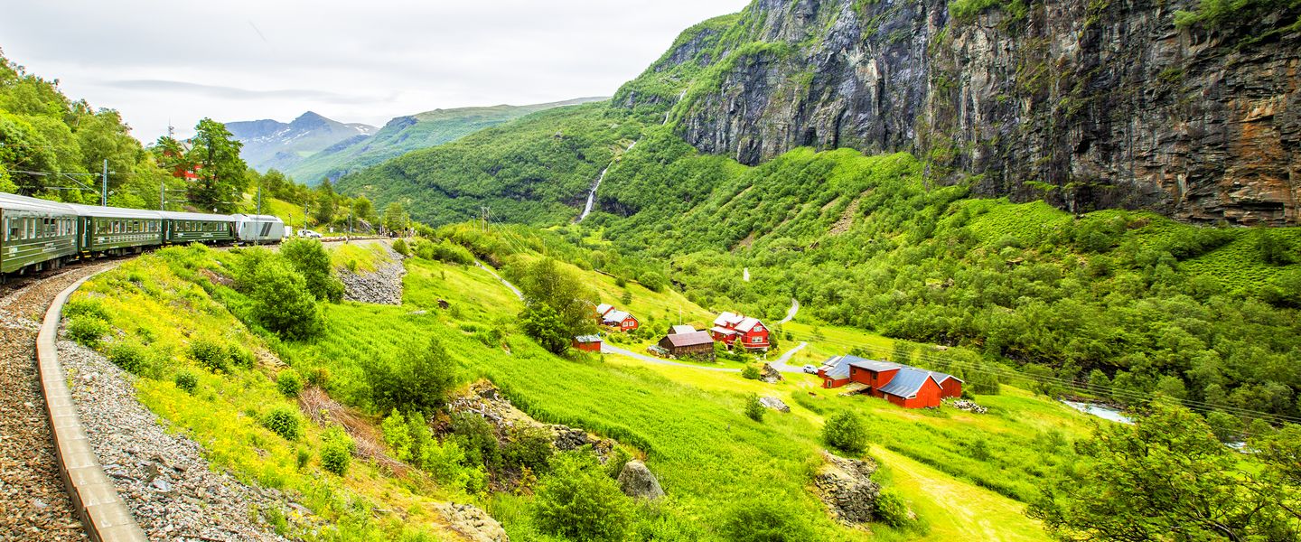 Am Morgen setzen Sie Ihre Fahrt nach Geilo fort, einem bedeutenden Wintersportort am Ustedalsfjord-See. Hier erwartet Sie ein ganz besonderes Erlebnis: die Fahrt mit der Bergenbahn, die Sie an tiefblauen Bergseen und den majestätischen Gipfeln des Hallingskarvet-Massivs vorbeiführt. Der höchstgelegene Bahnhof der Strecke, Finse (1222 m), bietet atemberaubende Ausblicke. In Myrdal steigen Sie dann um in die berühmte Flambahn, die steil bergab zum tiefblauen Aurlandsfjord führt, einem Seitenarm des über 200 km langen Sognefjords. Unterwegs halten Sie am mächtigen Wasserfall Kjosfossen für einen Fotostopp. In Flam legen Sie eine Mittagspause ein und besuchen das kleine Flambahnmuseum. Anschließend genießen Sie eine Schifffahrt von Flam nach Gudvangen, die durch den UNESCO-Welterbe Naeröyfjord führt. Von Gudvangen geht es weiter mit dem Bus durch das malerische Naeröytal und das Städtchen Voss nach Bergen, dem wirtschaftlichen Zentrum der Westküste und einer der schönsten Städte Norwegens.