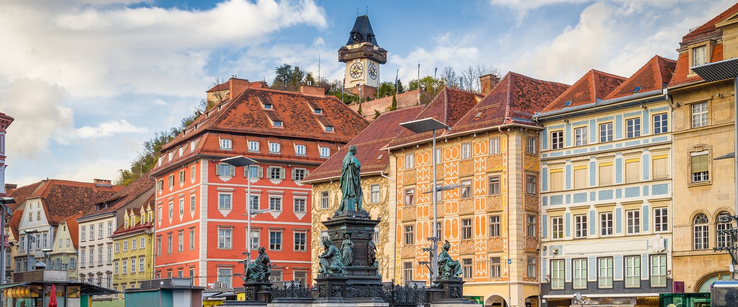 In der steirischen Hauptstadt Graz treffen südliches Flair, romantische Gassen und versteckte Innenhöfe, Bauwerke aus unterschiedlichsten Zeitepochen, sowie Kunst und Architektur zusammen. Die Bilderbuchstadt in der Steiermark ist Weltkulturerbe. Gemeinsam mit Schloss Eggenberg bildet das historische Zentrum von Graz ein einzigartiges Ensemble, das von der engen Verflechtung der Stadtgeschichte mit den herrschenden aristokratischen Dynastien – allen voran den Habsburgern – zeugt.