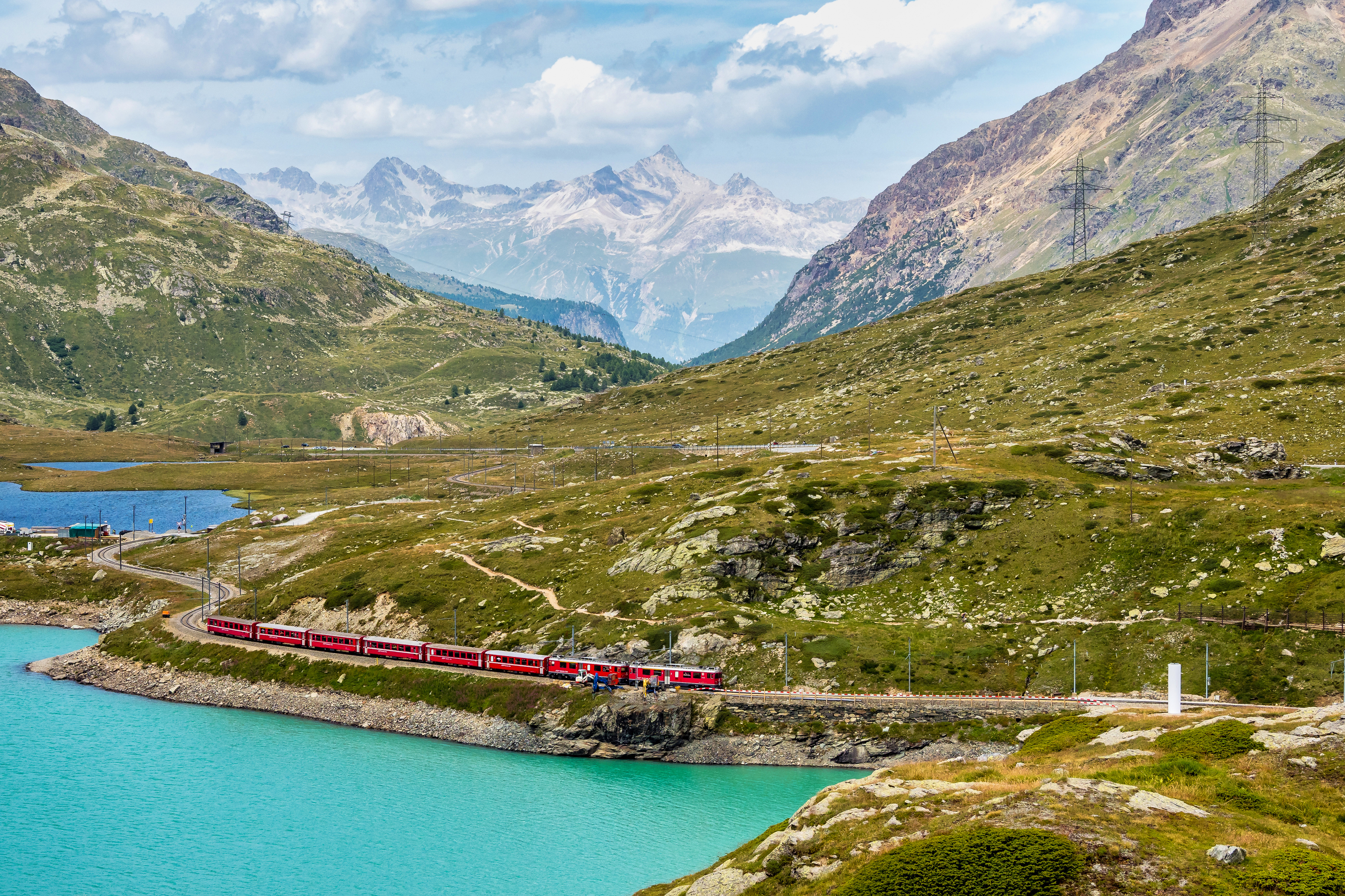 Die Bernina Bahn erstreckt sich über eine beeindruckende Strecke von etwa 61 Kilometern und verläuft durch die Schweizer Alpen. Sie beginnt in Chur, der ältesten Stadt der Schweiz, und führt über St. Moritz bis nach Tirano in Italien. Geografisch verläuft die Bahn durch einige der schönsten Landschaften der Alpen, darunter das Engadin und das Puschlav, und überquert den Berninapass, der auf einer Höhe von 2.253 Metern liegt. Die Strecke ist sowohl mit dem Auto als auch mit öffentlichen Verkehrsmitteln gut erreichbar, und die umliegenden Städte bieten zahlreiche Möglichkeiten für Aktivitäten in der Natur, wie Wandern und Skifahren. Die Lage der Bernina Bahn macht sie zu einem idealen Ziel für Tagesausflüge oder längere Aufenthalte, um die Schönheit der Schweizer Alpen zu genießen. Die Kombination aus atemberaubenden Ausblicken, reicher Geschichte und der Möglichkeit, die alpine Kultur hautnah zu erleben, macht die Bernina Bahn zu einem unvergesslichen Erlebnis für alle, die diese einzigartige Destination entdecken möchten.